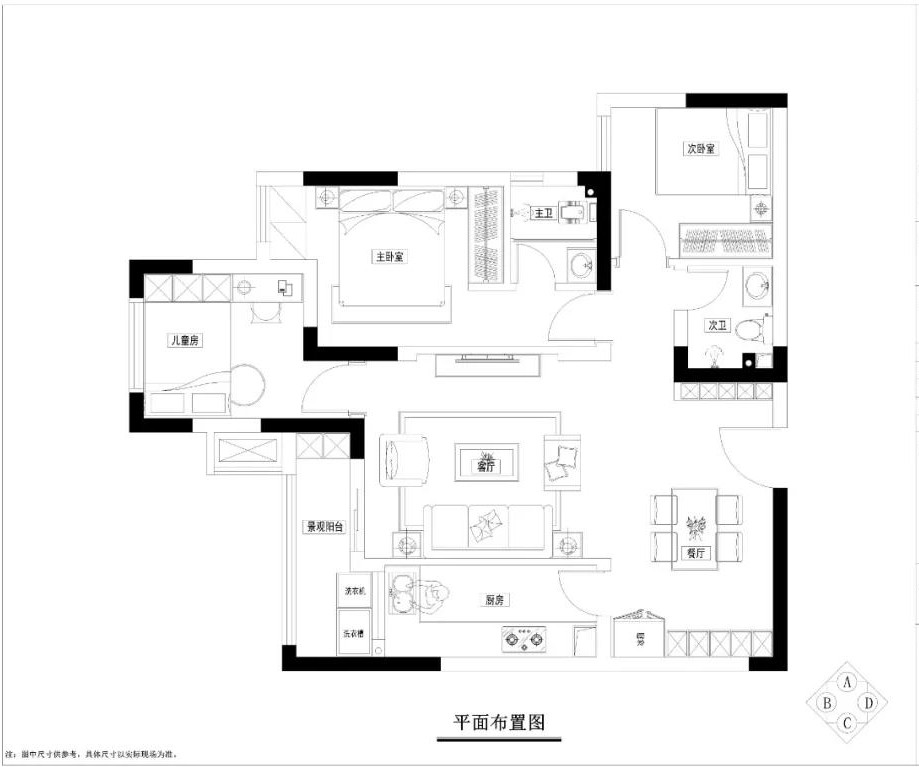 該房屋戶型面積較小,只有80m2,并且還是三室二廳,導(dǎo)致每間屋子的空間都較為局促。因此,進行設(shè)計的時候,我們需要考慮到空間利用的問題,將有限的房屋面積充分利用起來。同時也要符合用戶的需求,在利用空間之余給兒童留下活動的區(qū)域。