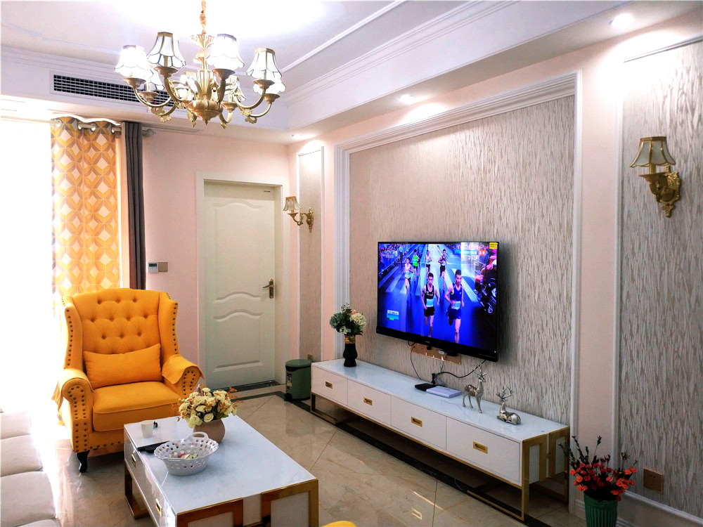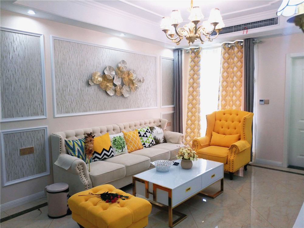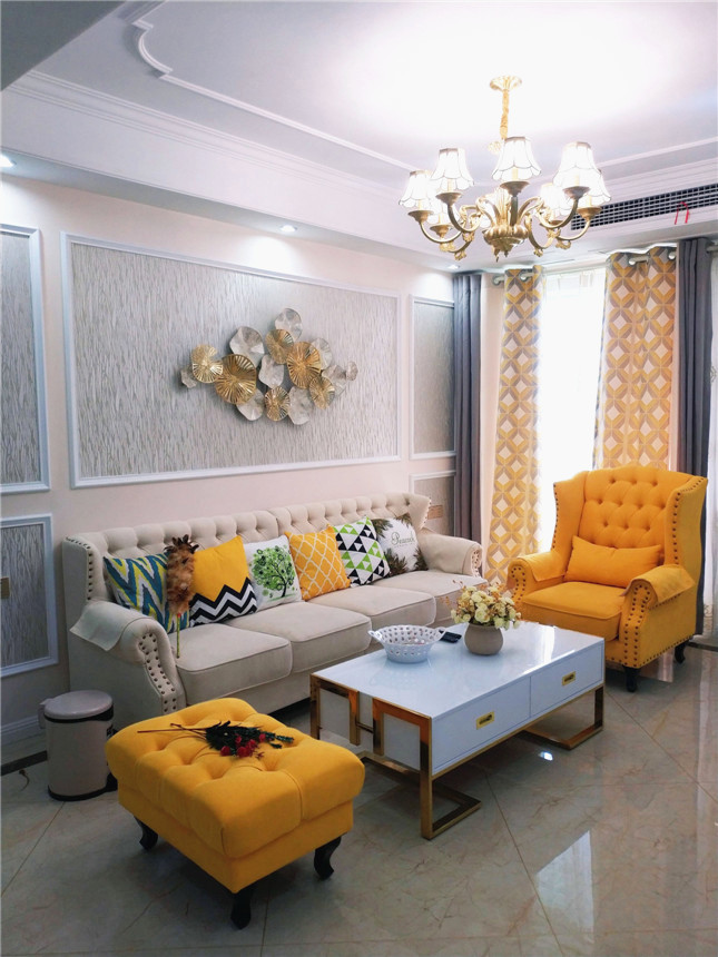 柔軟的布藝沙發(fā),是營造溫馨氛圍的不二之選。沙發(fā)的顏色選取了簡單的白色和明快的姜黃色,不經(jīng)意間流露出活潑的氣氛。金屬的墻面飾品與金屬銅色的燈具相得益彰,彎曲的弧度與圓環(huán)的形狀讓它們不會顯得過分生硬,而是在現(xiàn)代的氣氛中恰到好處地融入了一絲古典氣息。隨處可見的仿生花點綴了各個角落,為屋里增添了不少活力,更添溫暖與柔情。