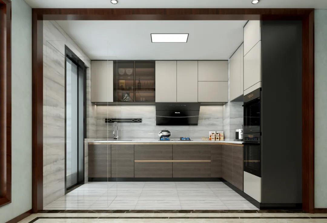廚房操作臺(tái)做L型設(shè)計(jì),動(dòng)線流暢,寬敞便捷。生活陽臺(tái)與之連通,相對擴(kuò)寬廚房的適用范圍。家電配備齊全,烘焙、烤制都不在話下。
