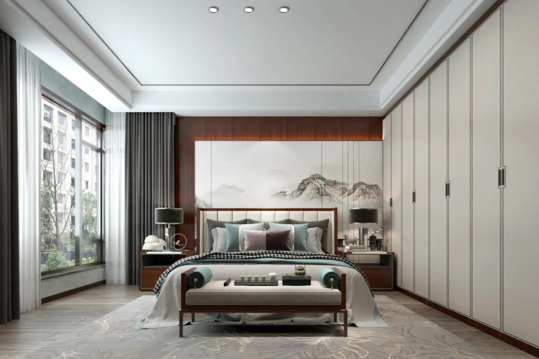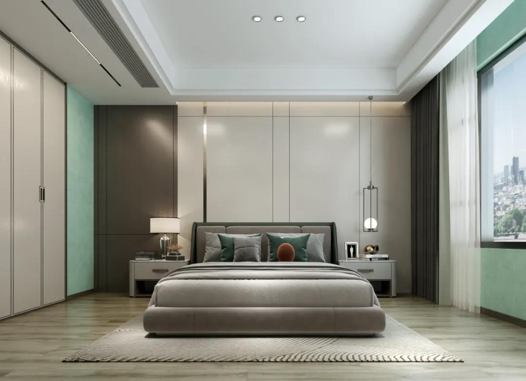 臥室整體去除復(fù)雜的設(shè)計(jì)元素,精準(zhǔn)提煉最能表達(dá)風(fēng)格的顏色,以灰綠、灰白、米色等低飽和度的色調(diào)進(jìn)行搭配,打造出素雅簡潔、又頗有中式風(fēng)韻的休憩空間。