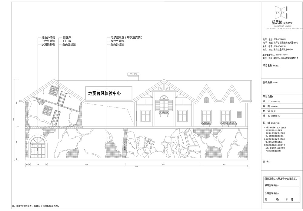 設(shè)計(jì)施工項(xiàng)目:仙女山旅游景區(qū)(地震體驗(yàn)中心) 設(shè)計(jì)立面圖 設(shè)計(jì)效果圖