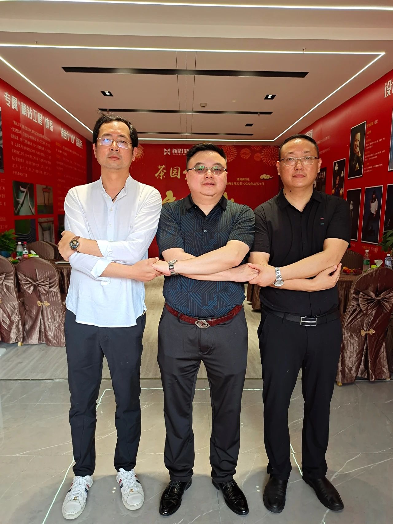 ▲新思路裝飾設(shè)計(jì)部總監(jiān)梅總、李總、工程材料總監(jiān)文總合影,以示團(tuán)結(jié)一心、砥礪同行之意