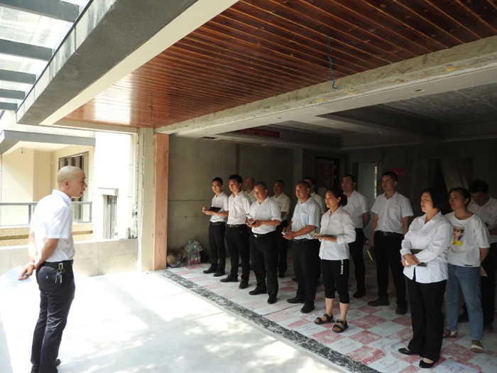 召集片區(qū)部分項(xiàng)目經(jīng)理,舉行了一場關(guān)于工地形象與安全及泥作、木作工藝培訓(xùn)會。