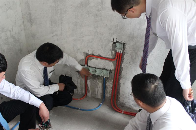 張總正在向大家詳細講解墻面開槽工藝標準