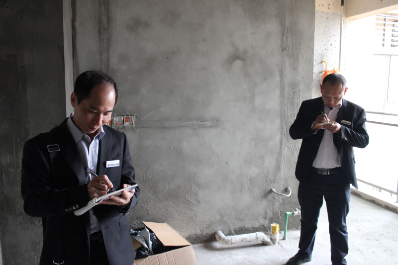 此次巡查的工地中,有剛進場開工的,有處于水電階段的,也有即將完工交付的,基本保證了此次檢查能夠覆蓋各階段的工程內(nèi)容。“進門首先檢查工地是否整潔,然后看安全保護,接下來看施工日志和施工情況。”文經(jīng)理強調(diào)說。新思路裝飾注重每一個細節(jié),尤其是工地形象更是重中之重,進門的第一件事就是確認工地形象是否達到公司標準。在檢查過程中,從水電線路的走位,到木工的制作;從材料的堆放,到垃圾的處理,巡查人員均嚴格按照公司工地管理的相關標準進行檢查,發(fā)現(xiàn)問題現(xiàn)場通知相關項目經(jīng)理限期整改到位,真正做到為客戶把好工地質(zhì)量關。
