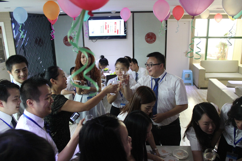 隨后,在“祝你生日快樂”的美妙歌聲和熱烈掌聲中,李總同家人們一起打開香檳,切開新思路十一周歲的生日蛋糕,共同祝福新思路十一周歲生日快樂。喝著芬香醉人的香檳,品嘗著香甜可口的蛋糕,在場的每個人臉上都洋溢著開心的笑容。大家頻頻舉杯,談笑風(fēng)生,豪情滿懷,憶崢嶸,品喜悅,慶典現(xiàn)場成了一片歡樂的海洋。當(dāng)然在慶祝之余,我們也把蛋糕和香檳送到正在現(xiàn)場談單的客戶手中,也讓他們一起分享這種幸福和喜悅。新思路的今天,離不開管理者的智慧領(lǐng)航,也離不開每一位新思路家人的執(zhí)著付出,更離不開廣大客戶十一年來的精心呵護(hù)與大力支持,感謝每一位可愛的客戶!