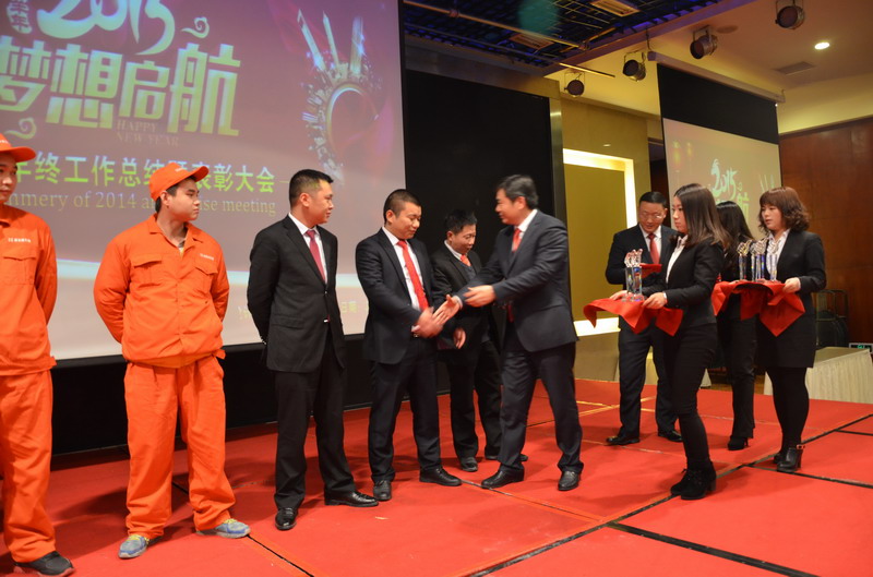 最后進(jìn)行的是本次大會(huì)的一項(xiàng)重要議程——表彰大會(huì)。來自南坪、江北、沙坪壩和工程部的13位優(yōu)秀員工受到了嘉獎(jiǎng)表彰,李總、張總、文經(jīng)理分別為獲獎(jiǎng)?wù)哳C發(fā)了榮譽(yù)證書和獎(jiǎng)金。在2014年,這些優(yōu)秀員工在自己的崗位上,愛崗敬業(yè),為公司的發(fā)展奉獻(xiàn)青春和熱血,在平凡的崗位上做出了不平凡的成績,是所有新思路人學(xué)習(xí)的榜樣。