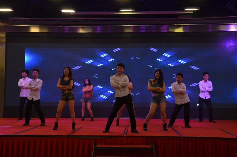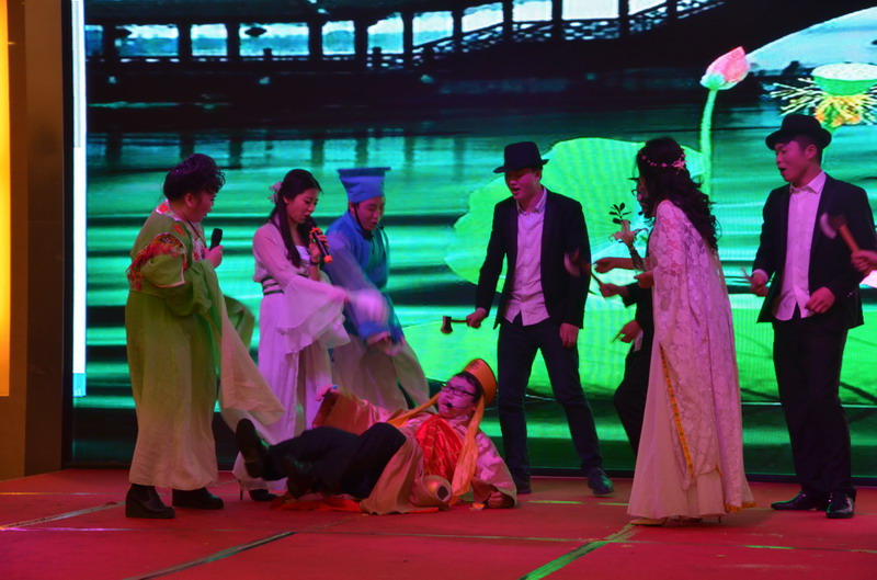 接下來的節(jié)目演出立刻讓晚會(huì)現(xiàn)場(chǎng)成為歡樂的殿堂。歌曲、舞蹈、小品、合唱多種節(jié)目形式,精彩紛呈,所有節(jié)目均為公司員工自編、自導(dǎo)、自演,充分反映出新思路裝飾生動(dòng)而富有內(nèi)涵的企業(yè)文化。繽彩紛呈、風(fēng)格各異的十幾個(gè)節(jié)目贏得觀眾滿堂喝彩,充分展現(xiàn)出新思路家人多才多藝、能歌善舞的一面。熱鬧喜慶的《拜新年》作為開場(chǎng)第一個(gè)節(jié)目閃亮登場(chǎng),歡快的舞蹈、喜慶的旋律、愉悅的氛圍感染著每一位在場(chǎng)的觀眾,為整場(chǎng)晚會(huì)點(diǎn)燃激情?;盍Ρ挤诺拇疅璧浮缎√O果》引起現(xiàn)場(chǎng)尖叫聲不斷;工程部家人帶來的歌曲《超越夢(mèng)想》以大合唱的形式唱響了新思路人超越夢(mèng)想、勇攀高峰的激情和心聲;性感柔美的歌伴舞《萬水千山總是情》更是引得場(chǎng)下“粉絲”陣陣尖叫。要說全場(chǎng)最閃亮的舞蹈,當(dāng)屬才女徐藝丹帶來的獨(dú)舞《映山紅》,優(yōu)美的舞姿訴說著無盡的情思,散發(fā)著醉人的芳香,看得人是如癡如醉。而江北店家人帶來的小品《招聘》延續(xù)去年的爆笑風(fēng)格,幽默的臺(tái)詞,惟妙惟肖的模仿讓現(xiàn)場(chǎng)笑聲連連,掌聲不斷。還有南坪店家人表演的小品《新白娘子傳奇》、工程部家人帶來的情景劇《交房》、沙坪壩店家人帶來的對(duì)唱《有你有我》、江北店家人表演的相聲《回家》......家人們以業(yè)余的身份發(fā)揮出了專業(yè)演員的水平,把角色演繹得惟妙惟肖,讓人嘆為觀止。