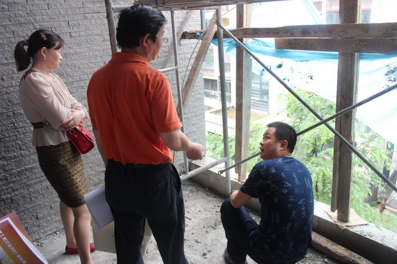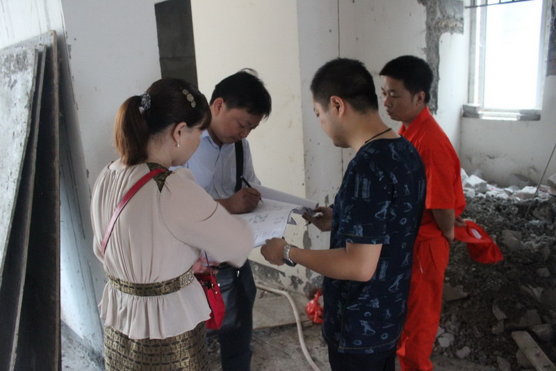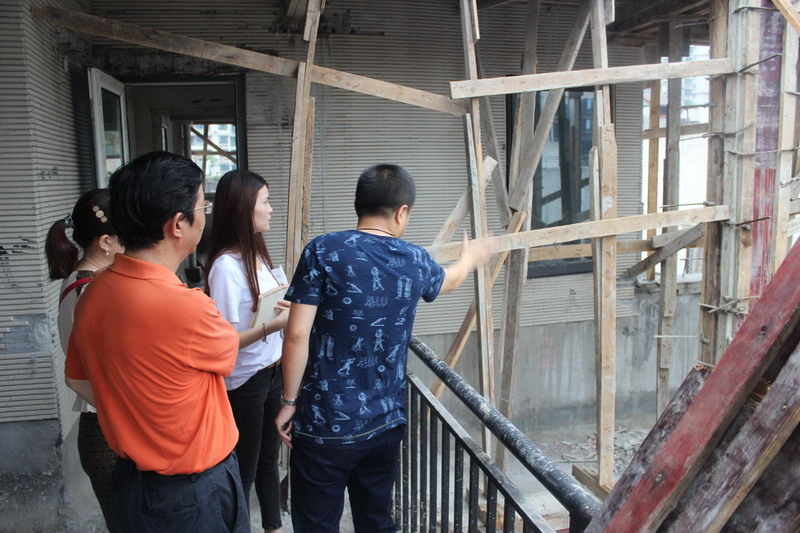 在進場過程中,專門做頂樓花園設(shè)計的美女也來了哈。大家根據(jù)現(xiàn)場情況,商討頂樓花園的設(shè)計方案。
