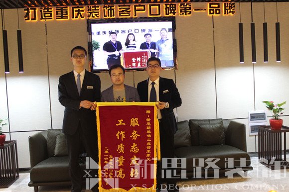 劉老師送來的這面錦旗,不僅僅是一面錦旗,是一種榮譽(yù),是劉老師對新思路裝飾企業(yè)的肯定和認(rèn)可,更是對我們的一種“鞭策”,促使我們更加用心地服務(wù)好我們的客戶,時刻兌現(xiàn)我們新思路裝飾企業(yè)的工作標(biāo)準(zhǔn)——客戶滿意是我們唯一的工作標(biāo)準(zhǔn)。在今后的工作中,新思路將一如既往地做好自己的工作,做出更多“精品工程”、“樣板工程”,來回報我們的客戶,。