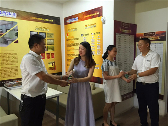 高溫送清涼活動作為新思路一貫作風(fēng),不僅得到一線員工的肯定,也贏得廣大業(yè)主朋友和業(yè)內(nèi)人士的高度贊揚(yáng)。保利觀塘客戶面對突如其來的送水小組,感到萬分的驚訝,說到我們新思路裝飾的不僅工地做得很好,而且各方面都很負(fù)責(zé),回頭一定送上錦旗感謝。作為我們新思路家人聽到此番話語的時(shí)候,心里自當(dāng)是如甘露般清爽。