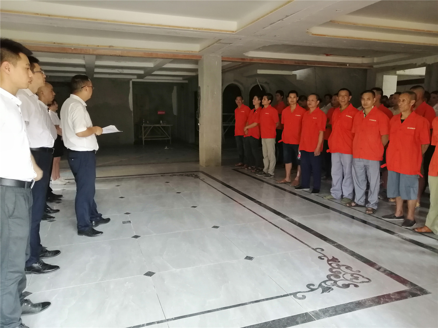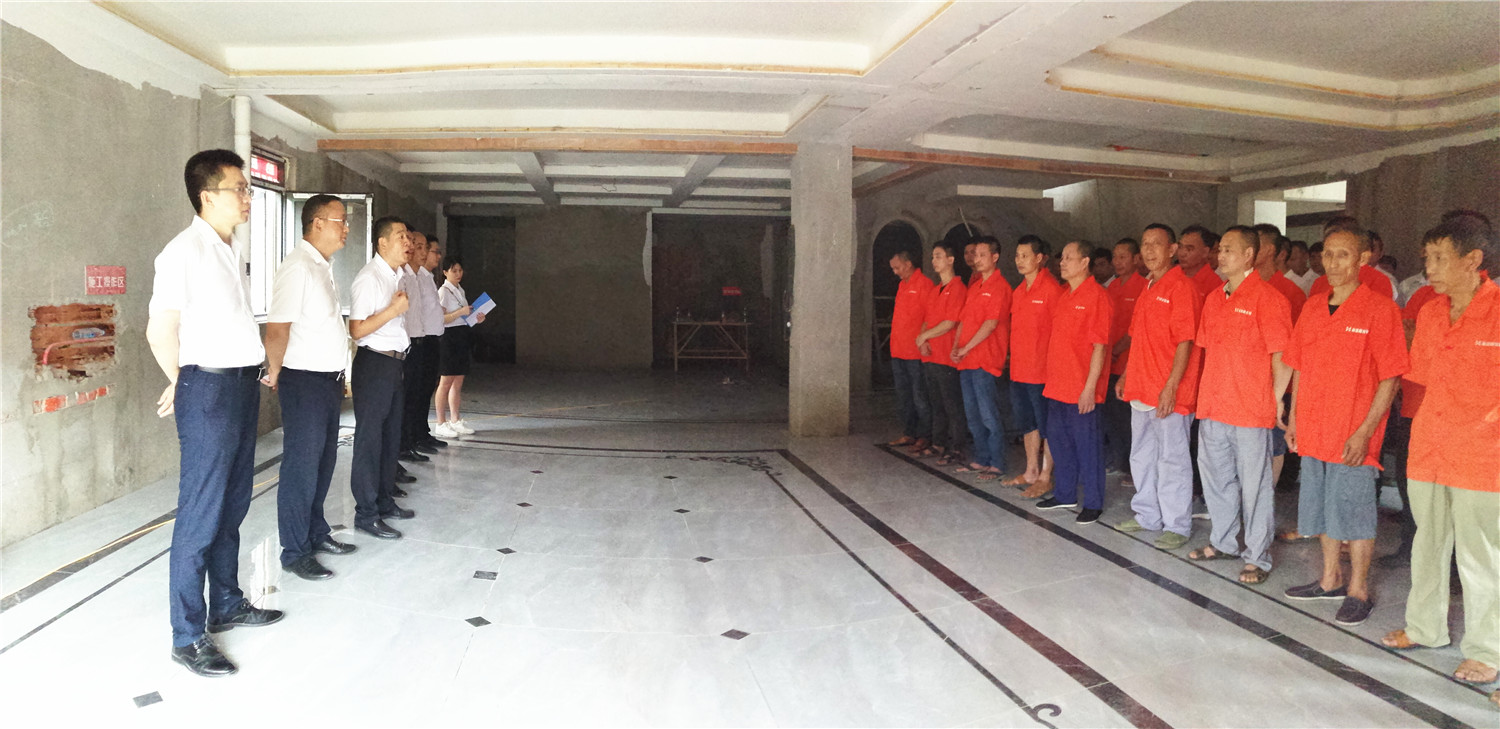 給工人和項目經(jīng)理整隊,展現(xiàn)良好精神面貌