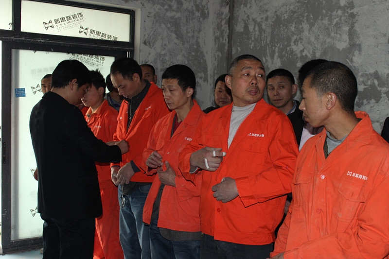 此次培訓(xùn)由具有二十多年施工經(jīng)驗(yàn)的張總親自主持。首先,張總以提問的形式宣講了公司的基本信息和企業(yè)文化,同工人們進(jìn)行了熱烈互動(dòng),對(duì)于回答正確的工人,當(dāng)場(chǎng)給予現(xiàn)金獎(jiǎng)勵(lì)。張總強(qiáng)調(diào),作為新思路裝飾的一員,牢記公司的一些基本信息不僅能加強(qiáng)對(duì)公司的了解,同時(shí)也是展現(xiàn)新思路員工職業(yè)素養(yǎng)和形象的新窗口。隨后張總又從泥水施工新工藝技術(shù)、工序流程、規(guī)范標(biāo)準(zhǔn)、注意事項(xiàng)等方面對(duì)工人們進(jìn)行了專業(yè)培訓(xùn)。在培訓(xùn)過程中,張總以現(xiàn)場(chǎng)在施工工地為實(shí)例,通過一些鮮活的事例,比如一根線,兩顆釘子,怎樣找水平;平整度、垂直度如何檢測(cè);磚與磚接縫高低差標(biāo)準(zhǔn);陰陽角角度差等,進(jìn)行現(xiàn)場(chǎng)示范和講解。工人們也積極發(fā)言,提出一些獨(dú)到的觀點(diǎn)和見解,張總也熱情耐心地同他們交流討論,現(xiàn)場(chǎng)氣氛輕松而熱烈。