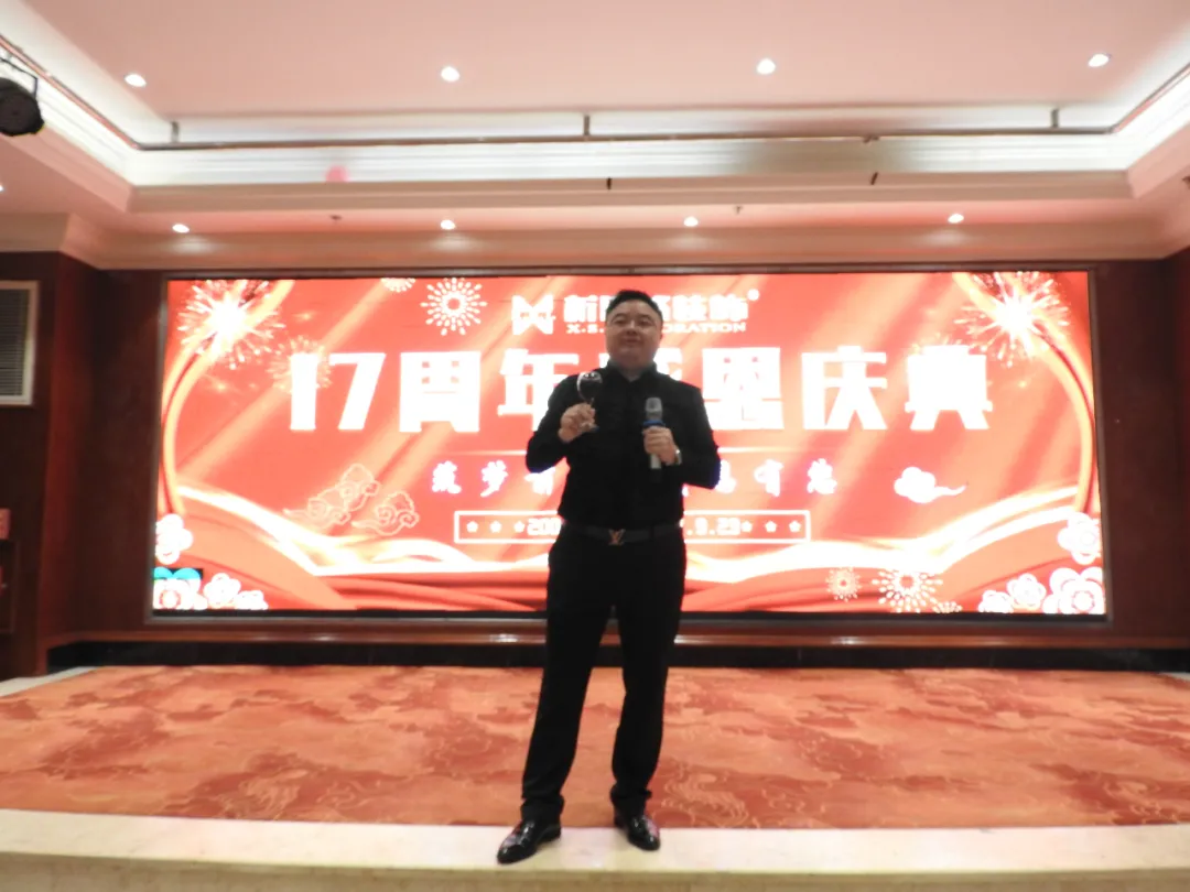 為慶祝新思路裝飾的十七歲生日,全體員工正裝出席,參加慶典晚會(huì)。晚會(huì)開始前,作為新思路裝飾的創(chuàng)始人、掌門人的李總發(fā)表了真情洋溢的講話,表達(dá)了對(duì)陪伴新思路裝飾走到今天的員工、家人還有合作伙伴的深深感謝,回顧了新思路裝飾十七年的輝煌歷史與艱苦奮斗的點(diǎn)點(diǎn)滴滴,感嘆這十七年的來之不易,并展望未來,與新思路裝飾的家人們舉杯共飲,希望在未來的日子里能和大家一起繼續(xù)奮斗,為了新思路裝飾的美好明天、更是為了我們每個(gè)人的美好明天而團(tuán)結(jié)奮進(jìn)、開拓進(jìn)取、勇攀高峰、折桂而歸!