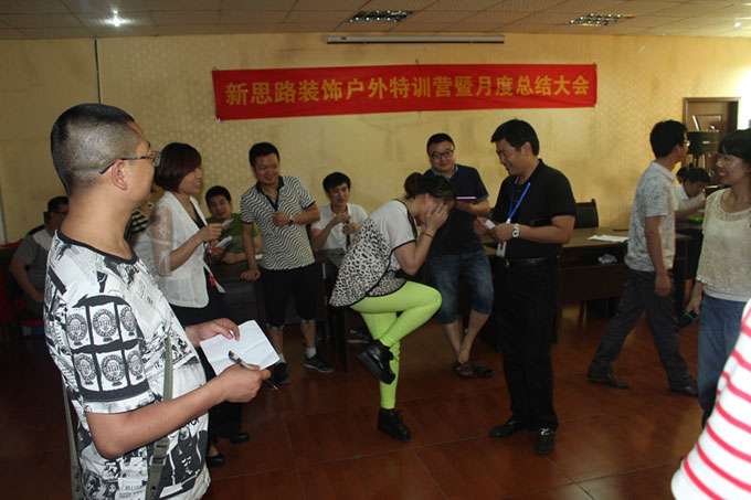 六月的云篆山山色秀麗,郁郁蔥蔥,一派生機(jī)盎然的景象。6月3號下午3點(diǎn),新思路裝飾戶外特訓(xùn)營活動正式開始。由于天氣炎熱,為員工身體著想,戶外拓展活動臨時(shí)改在室內(nèi)進(jìn)行。雖然是在室內(nèi),但所有人依舊熱情高漲,斗志昂揚(yáng)。在張總的指揮下,60多號員工分成了三個(gè)小隊(duì),“NO.1”“雄霸天下”“野狼隊(duì)”,每一個(gè)名字都霸氣無比,盡顯新思路裝飾開拓創(chuàng)新、銳意進(jìn)取的風(fēng)范。隨著時(shí)間一分一秒的過去,大家早已是汗流浹背,但是再高的溫度也抵擋不住新思路人火熱的心?;顒泳o張有序地開展,提前引爆了一整個(gè)夏天的激情與活力。