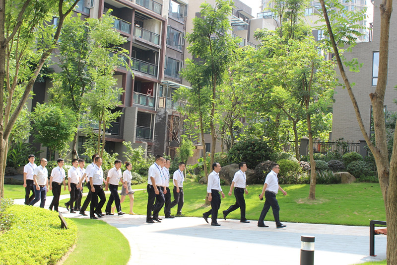 公司管理層在李總的帶領下,均統(tǒng)一著正裝對工地進行巡查