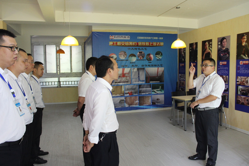 在雅居樂工地,李總一行認真察看了解了工地的施工進度、施工細節(jié)、工藝工序等情況。在檢查的同時,李總還根據(jù)自己多年的軟裝設計經(jīng)驗,向大家悉心傳授了室內(nèi)軟裝搭配技巧和用材講究等知識,他的講解新穎獨到、精辟到位,令在場的所有管理層人員受益匪淺。