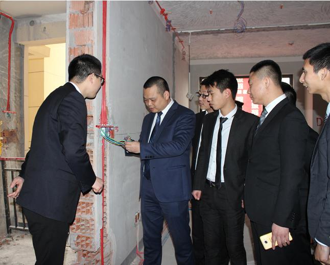 (渝北店羅經(jīng)理正在為大家講解水電線路工藝做法)