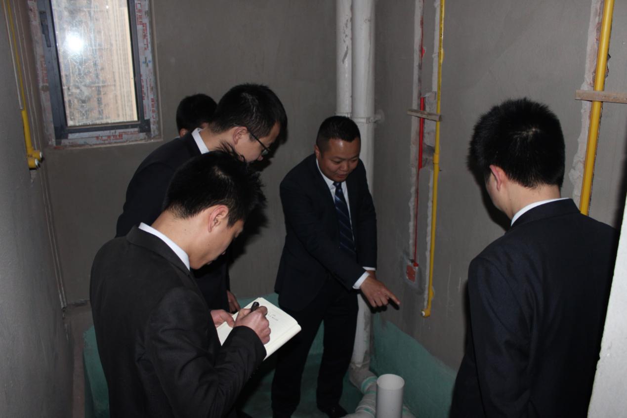 (巴南店桑店長正在與質(zhì)檢們討論水管防水工藝)
