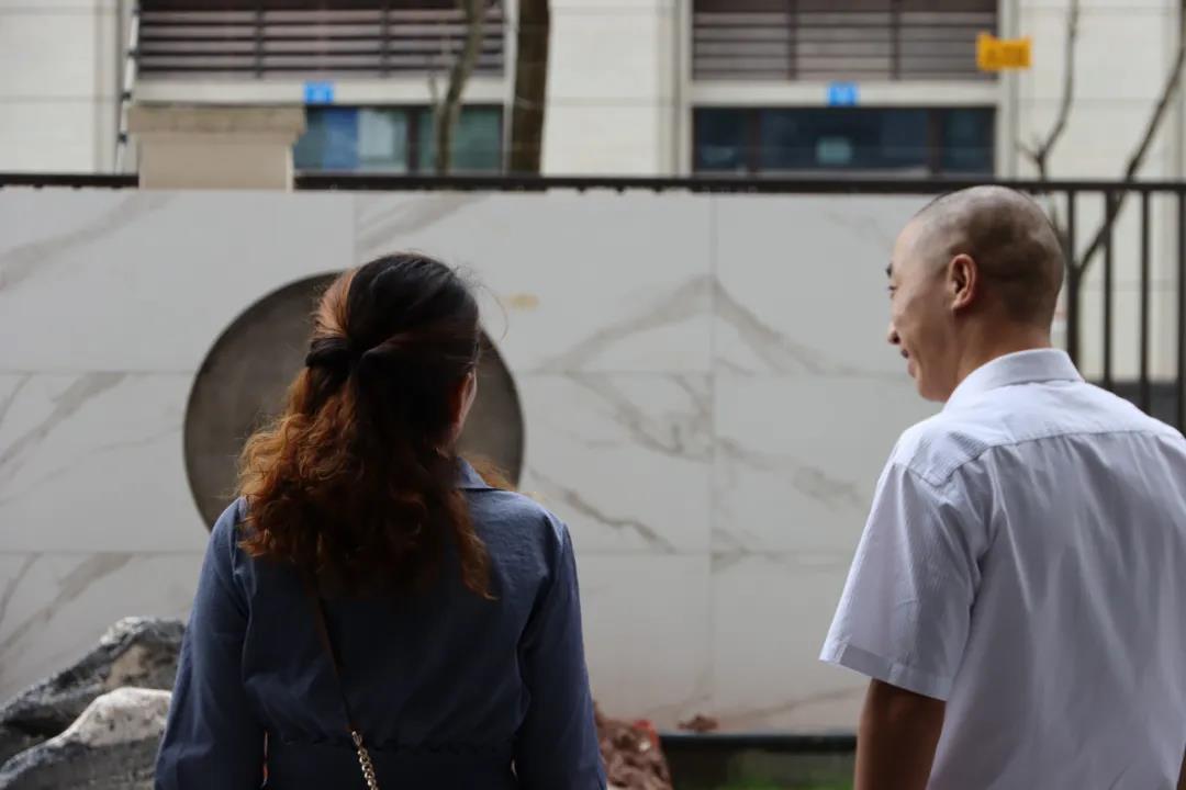 ▲巡查小組查看最后一個(gè)小區(qū),檢查墻上裝飾