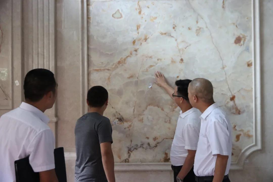 ▲工程部李經(jīng)理檢查各項(xiàng)工藝