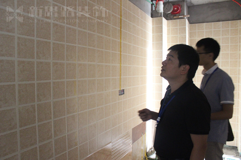 張總在仔細(xì)檢查貼磚細(xì)節(jié)