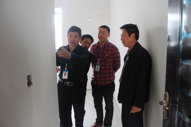 巡查小組成員在一起探討墻面陰陽(yáng)角施工工藝