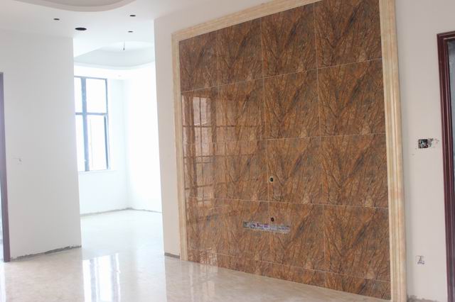 張總在仔細(xì)檢查墻面貼磚工藝細(xì)節(jié)