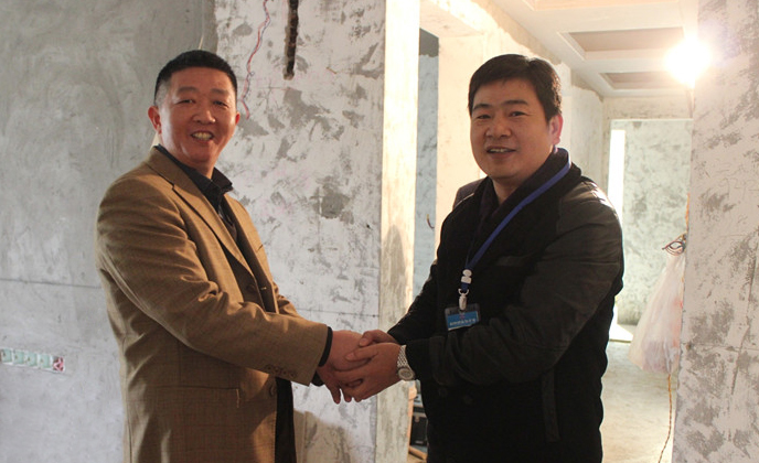 在雅居樂20-5-5工地,我們巧遇了正在工地忙碌的業(yè)主蔣老師。得知我們是巡查小組之后,蔣老師非常熱情地同張總握手,并連連稱贊新思路施工水平高,服務(wù)熱心周到,令他非常滿意。張總代表公司對蔣老師的信任和肯定表示了感謝,他鄭重表示,為客戶提供放心有保障的裝修服務(wù)是我們新思路的責(zé)任,客戶的認(rèn)可和肯定是對我們的最高褒獎(jiǎng)。新思路將不忘客戶托付,把每個(gè)工程都做成客戶心中滿意的“國標(biāo)工地”。